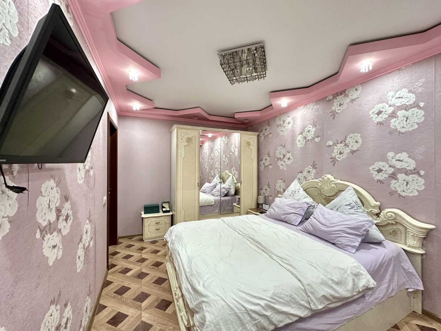 Просторные комнаты 19 и 16 кв.м. Есть отдельная гардеробная. Установлены кондиционеры. В квартире много дополнительного света. Большая 12-метровая кухня с выходом на просторную остеклённую лоджию.